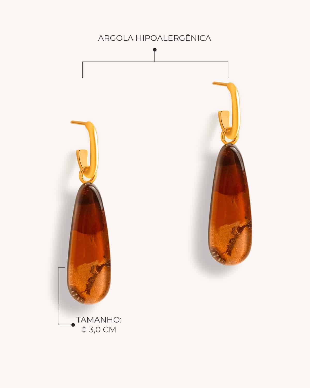 Resistentes e hipoalergênicas, nossas peças são produzidas com 2 camadas de ouro 18K, seladas com verniz protetor.