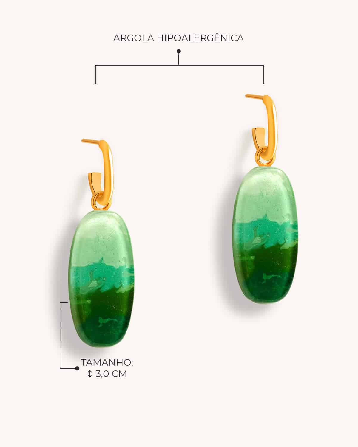 Resistentes e hipoalergênicas, nossas peças são produzidas com 2 camadas de ouro 18K, seladas com verniz protetor.