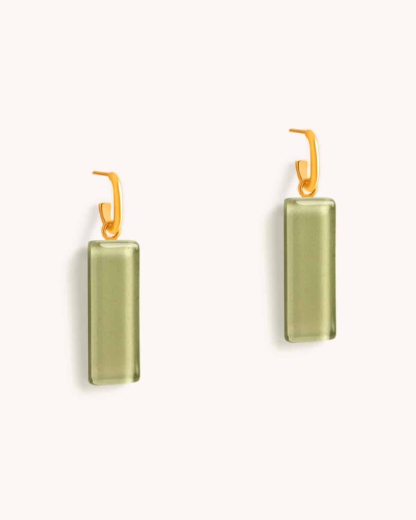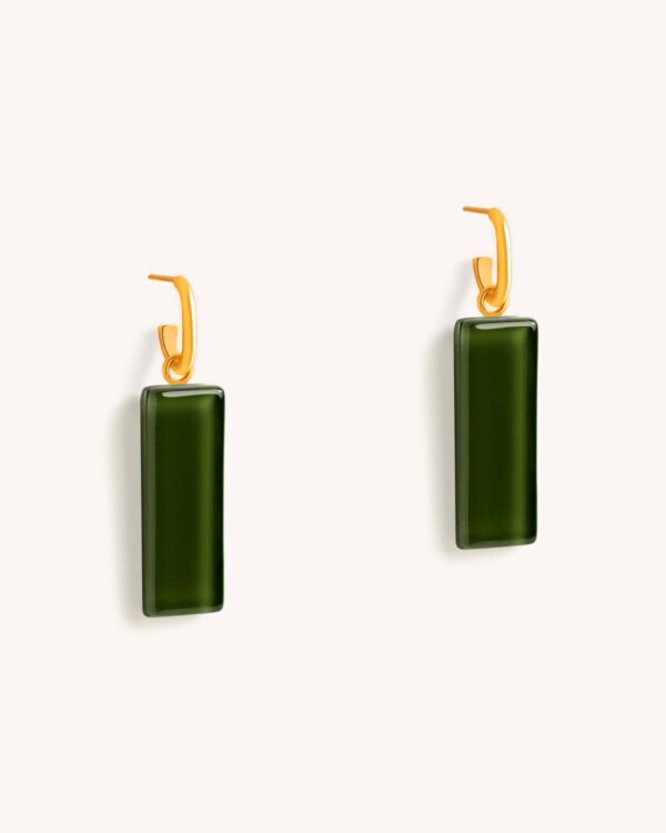 Argola Retângulo Verde Militar – Banho Ouro 18K