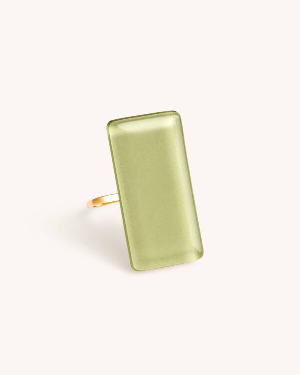Anel Retângulo Verde Militar – Banho Ouro 18K