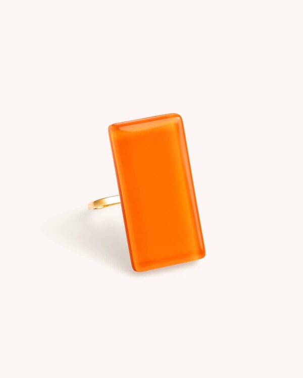 Anel Retângulo Laranja – Banho Ouro 18K